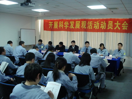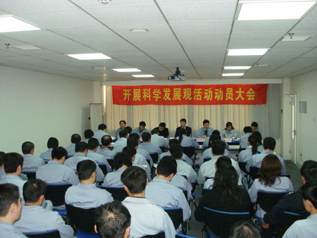 動員大會由總經(jīng)理孫龍平同志主持。會上,首先宣讀了《關(guān)于成立公司學(xué)習(xí)實踐科學(xué)發(fā)展觀領(lǐng)導(dǎo)小組的通知》,荏原博泵黨總支副書記姜作棟同志宣讀了公司《深入學(xué)習(xí)實踐科學(xué)發(fā)展觀活動的實施方案》,明確了各階段的任務(wù)要求和具體責(zé)任人,并公布了公司信箱、意見箱,鼓勵廣大黨員、群眾對公司開展好學(xué)習(xí)實踐科學(xué)發(fā)展觀活動獻計獻策。