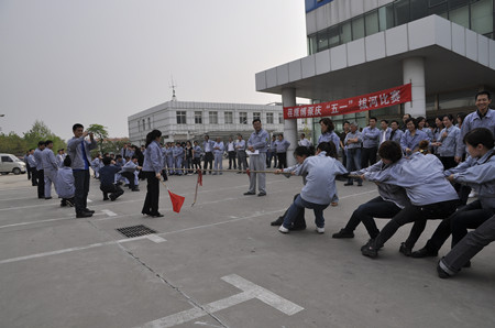 新聞中心為慶祝五?一勞動節(jié),公司工會舉辦“第五屆員工拔河比賽”。4月30日下午,在辦公樓前200多名員工參加的拔河比賽正緊張進行。參賽隊伍共有八支男隊、四支女隊。經(jīng)過緊張的角逐,焊接物流隊以絕對的優(yōu)勢力拔頭籌獲得男子冠軍,生產(chǎn)裝配隊獲得男子亞軍;生產(chǎn)部女隊獲女子冠軍。
