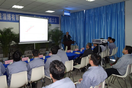 王正軍總經(jīng)理首先對(duì)2014年度工作做了總結(jié):2014年是一個(gè)豐收年,各項(xiàng)指標(biāo)創(chuàng)公司歷史新高。訂貨同比增長(zhǎng)2%, 營(yíng)業(yè)收入同比增長(zhǎng)9.2%,應(yīng)收賬款大幅下降。更可喜的是臨界利潤(rùn)率增長(zhǎng)3.8個(gè)百分點(diǎn)。公司連續(xù)二年實(shí)現(xiàn)盈利,完成了荏原制作所的總體目標(biāo) 。